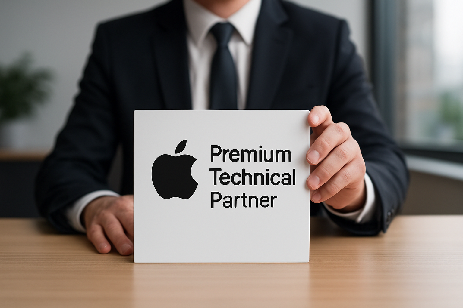 Apple Premium Technical Partner (APTP) — Höchste Stufe. Vollständige technische Zertifizierung, nachgewiesene Enterprise-Projekterfahrung, strukturierte Servicekapazitäten und direkter Apple-Tier-2-Supportzugang.